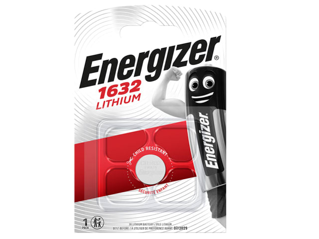A pack of 1 CR1632 lithium coin battery. With a child resistant back making it harder for them to open.